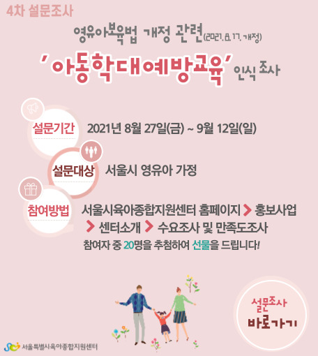 [서울센터] "가정 내 아동학대" 인식 조사 (참여자 중 소정의 상품 제공) |