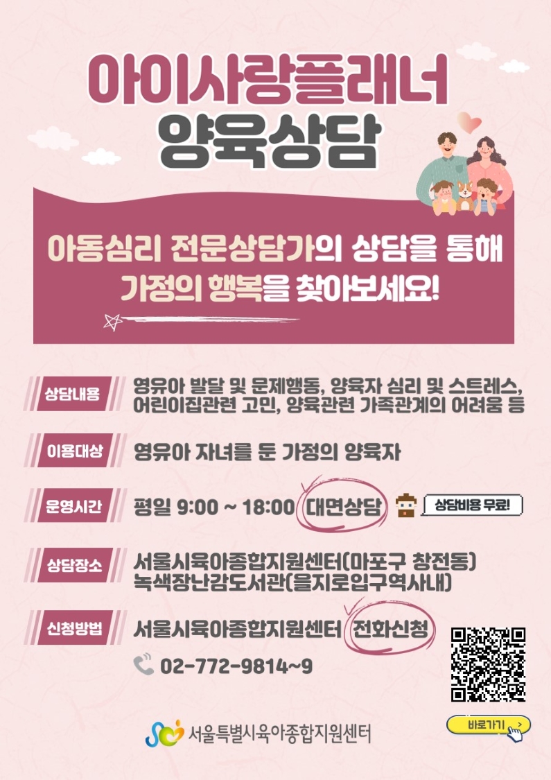 [서울센터] ‘아이사랑플래너’ 양육·심리전문가 양육 상담 지원 안내 |