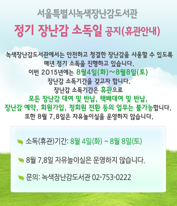| 제목 | 정기 장난감 소독일 공지(휴관안내) |