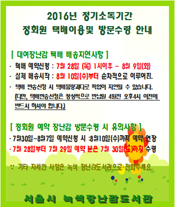 | 제목 | 2016년정기소독기간정회원택배및방문수령안내 |