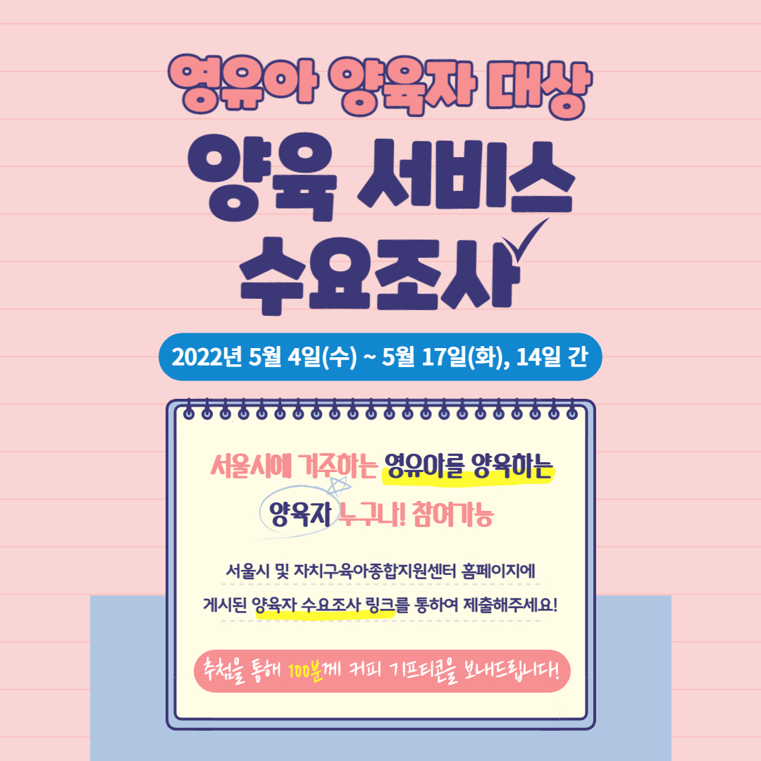 [서울센터] 2차 설문조사 진행중(영유아 가정 누구나 참여 가능/ 기프티콘 증정) |