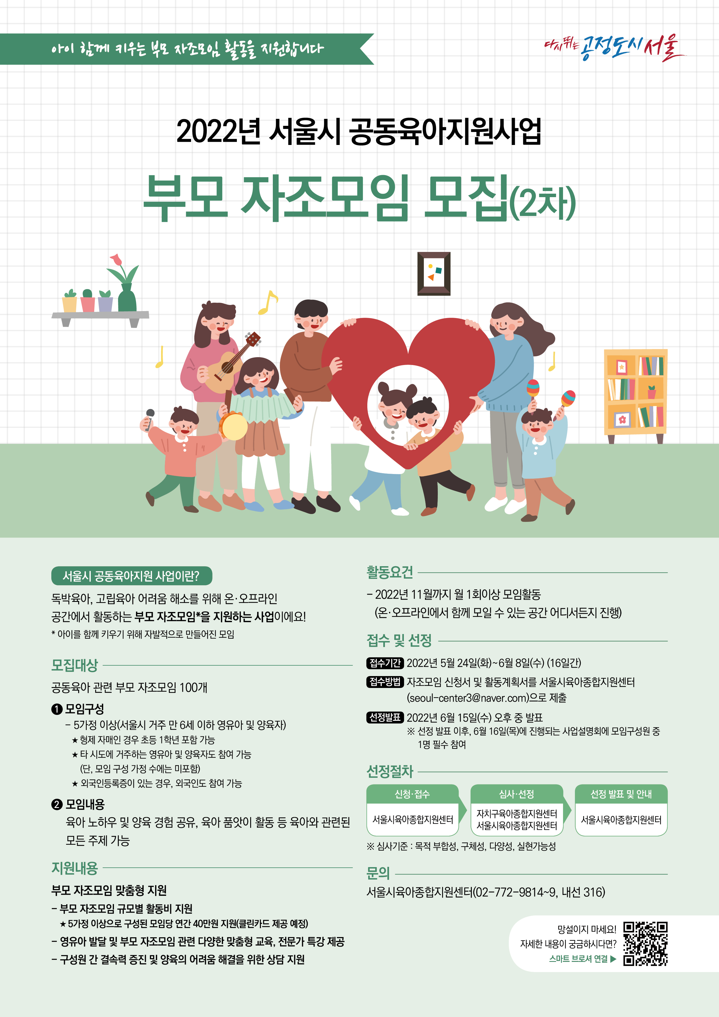 | 제목 | [서울센터] 2022년 서울시 공동육아지원사업 부모 자조모임 모집 안내(2차 추가 모집) |