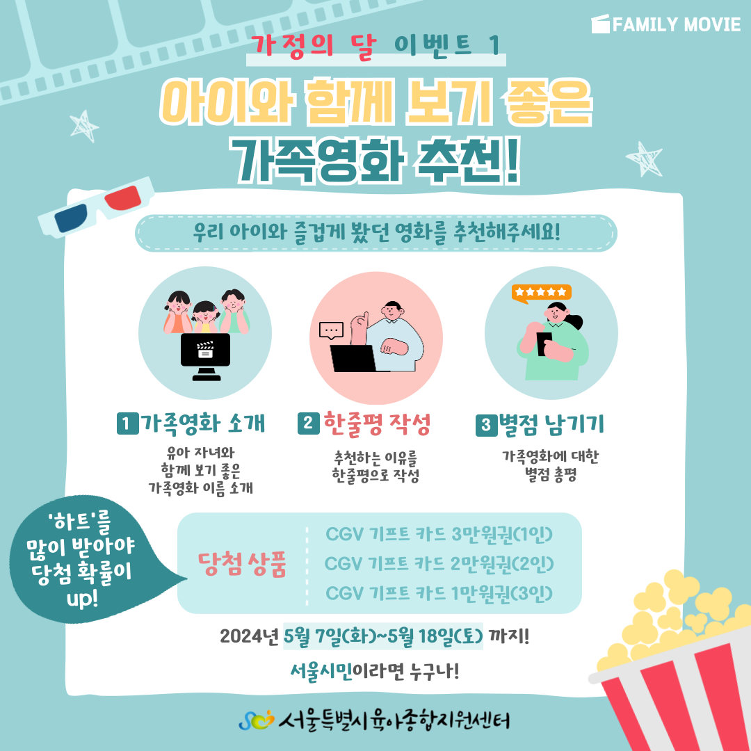 | 제목 | [서울센터] 가정의 달 이벤트1-아이와 함께 보기 좋은 가족영화 추천!(5/7~5/18까지!) |