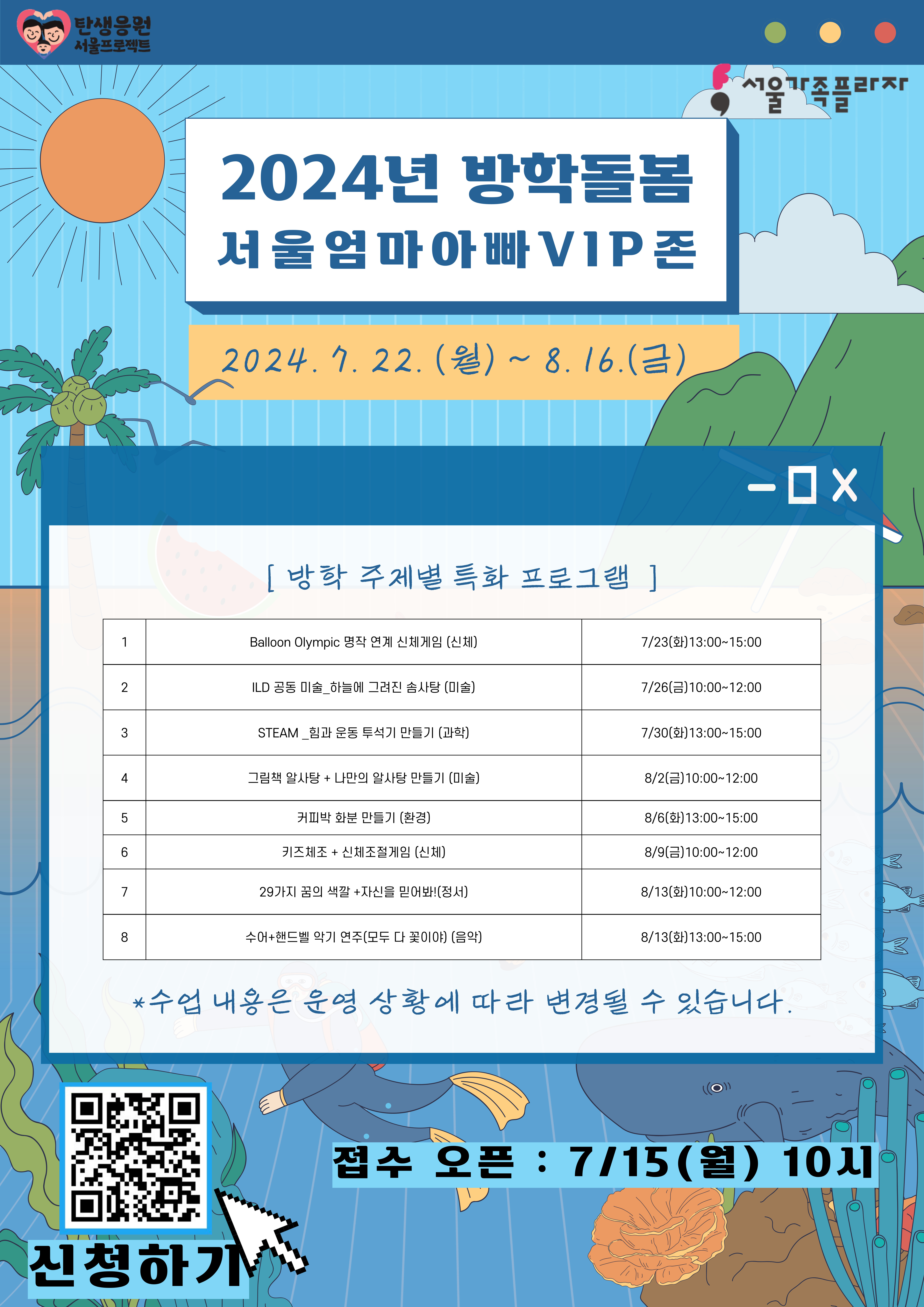 | 제목 | [서울가족플라자] '서울엄마아빠VIP존 3호' 여름방학 돌봄 프로그램 안내 |